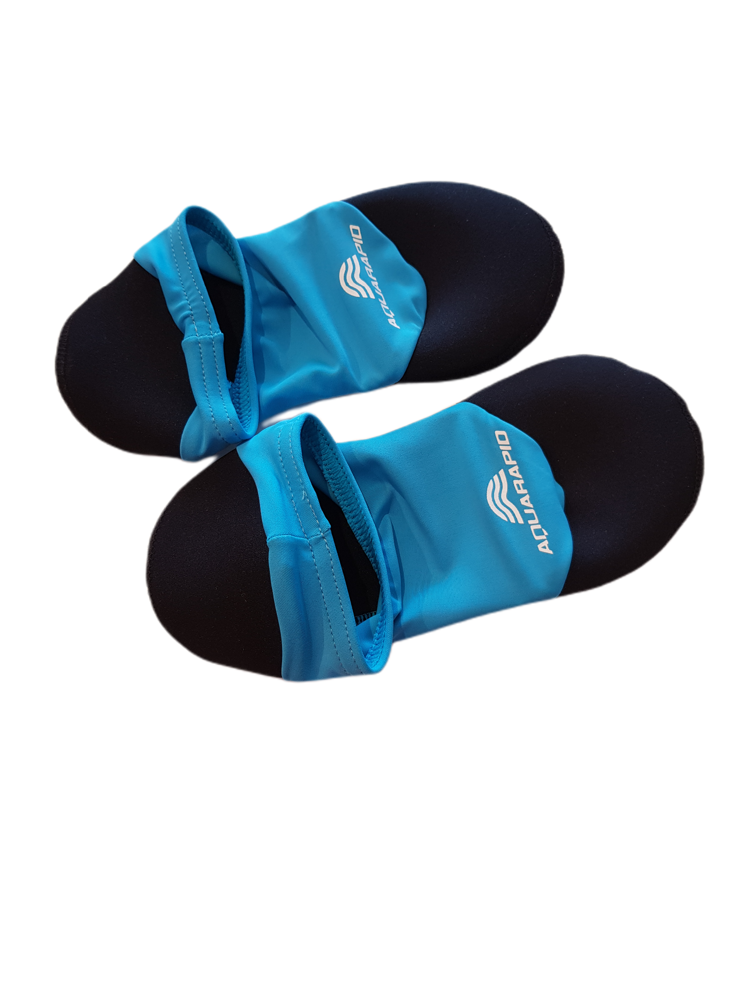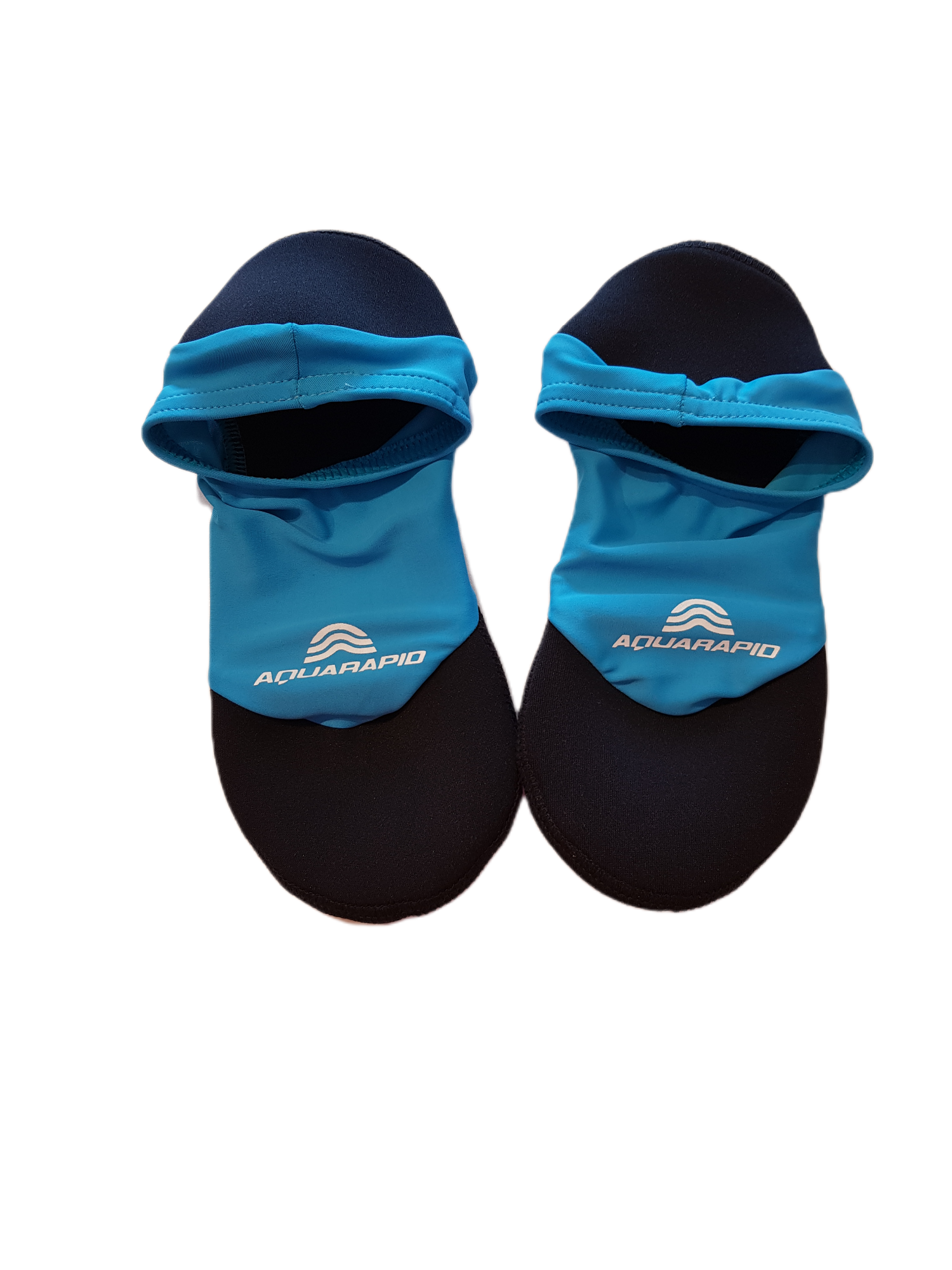 Calza protettiva in tessuto elastico con sottopiede rinforzato in neoprene e suola in gomma antiscivolo.