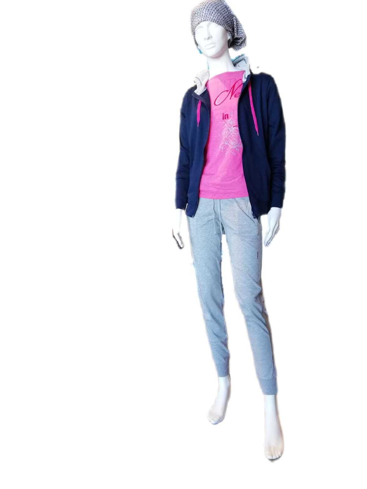 Felpa donna basic in interlock di cotone abbinabile con pantalone (F82J), apertura full zip