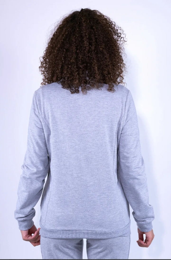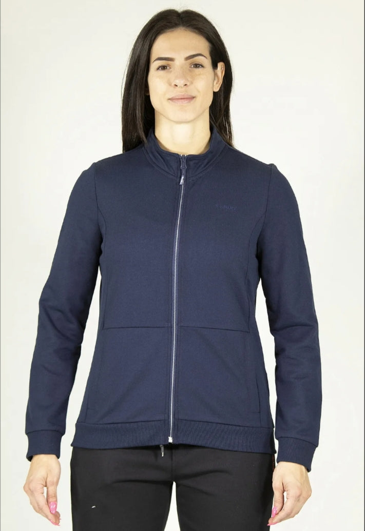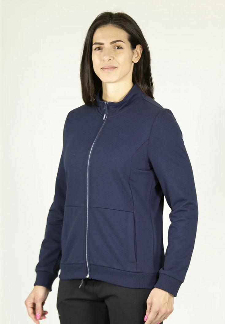 Felpa in tessuto poliestere cotone con cerniera centrale con denti argento, tasche laterali, ricamo e dettagli in lurex argento.