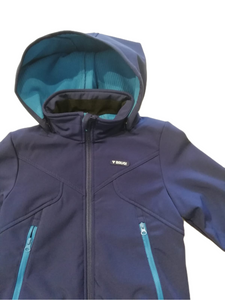 Giacca in Soft Shell 3 strati con cappuccio staccabile tramite bottoni.