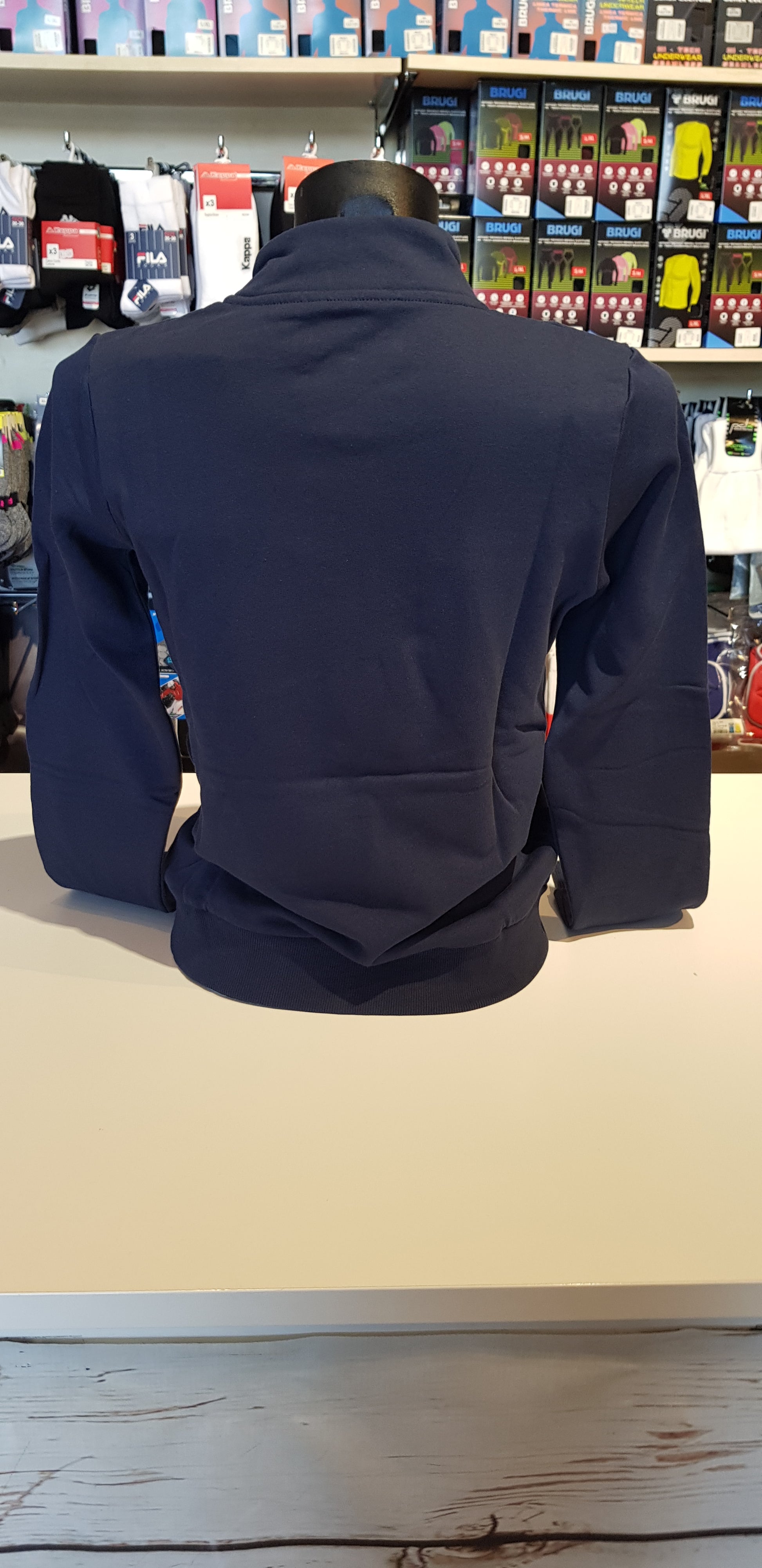 Felpa con zip 100% cotone garzato internamente. ha tasche applicate, maglina a i polsi e sul fondo.