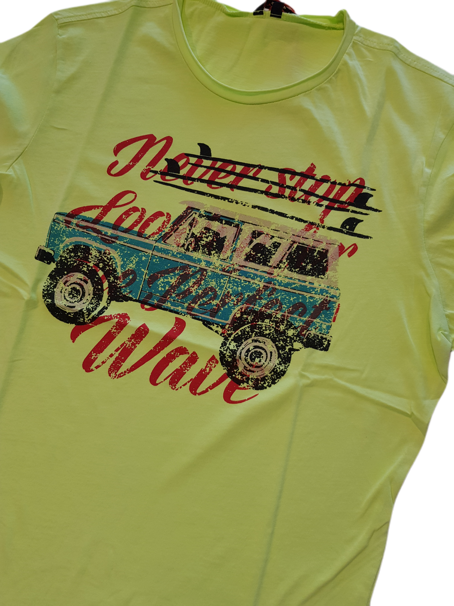 T-shirt uomo in jersey di cotone con stampa frontale, girocollo e taglio vivo sul fondo e sulle maniche