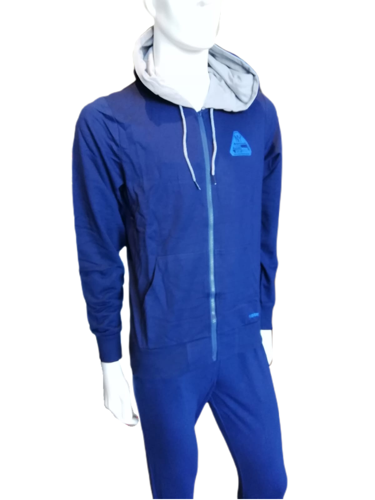 Felpa aperta con full zip, cappuccio fisso esterno e tasche frontali.